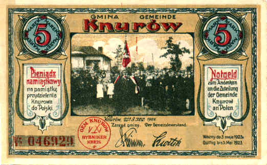nastaniem okresu hiperinflacji marki niemieckiej. Do kolejnej emisji w Knurowie jednak już nie doszło, właśnie z uwagi na zmianę