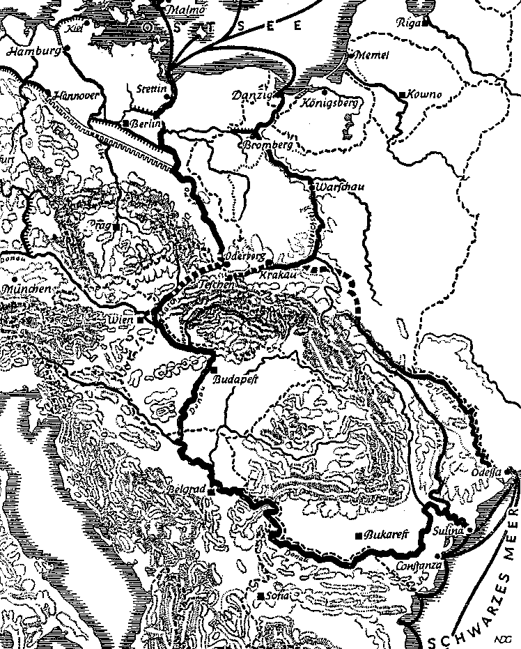 | Mapka Nr 1 Proponowane granice Niemiec po II-giej wojnie światowej przez Henry