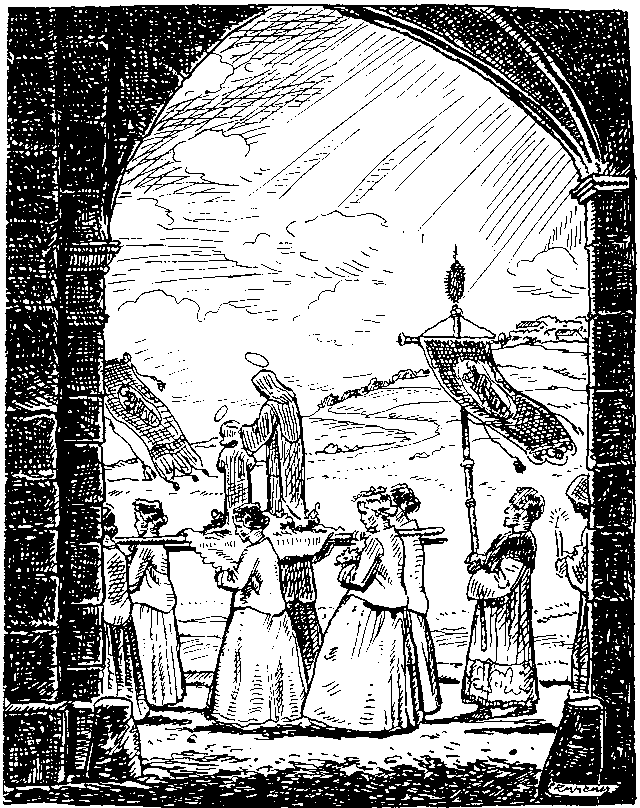 Zeichnung von Zwiener, Breslau Aus dem Groß Strehlitzer Kalender 1936, Pilger auf dem Weg nach St. Annaberg