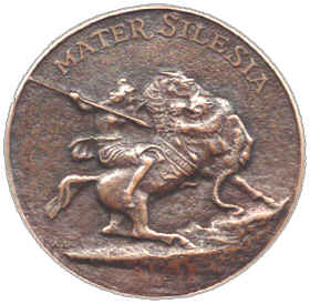 Amazone auf dem Pferde im Kampf mit einem Panther, sowie die Worte „Mater Silesia“ auf. Dieses Bildnis entstammt aus Entwurf des
