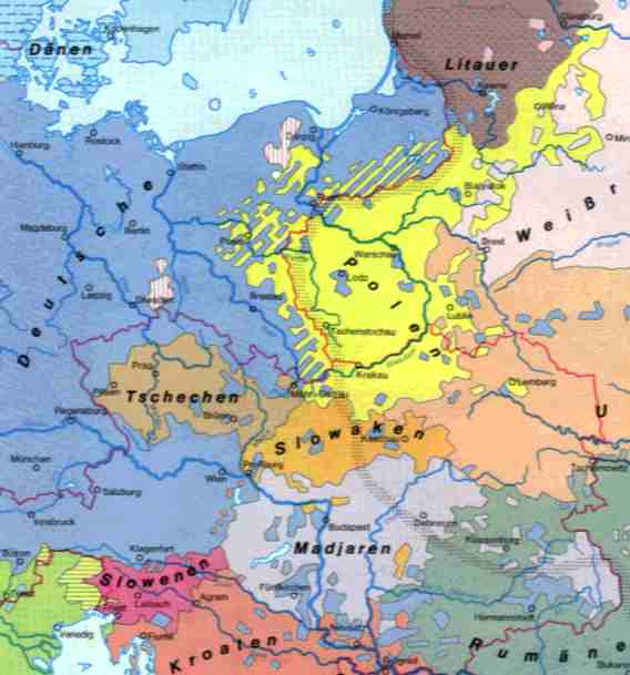 pomiędzy dzisiejszą zachodnią i północną granicą etniczną ludności